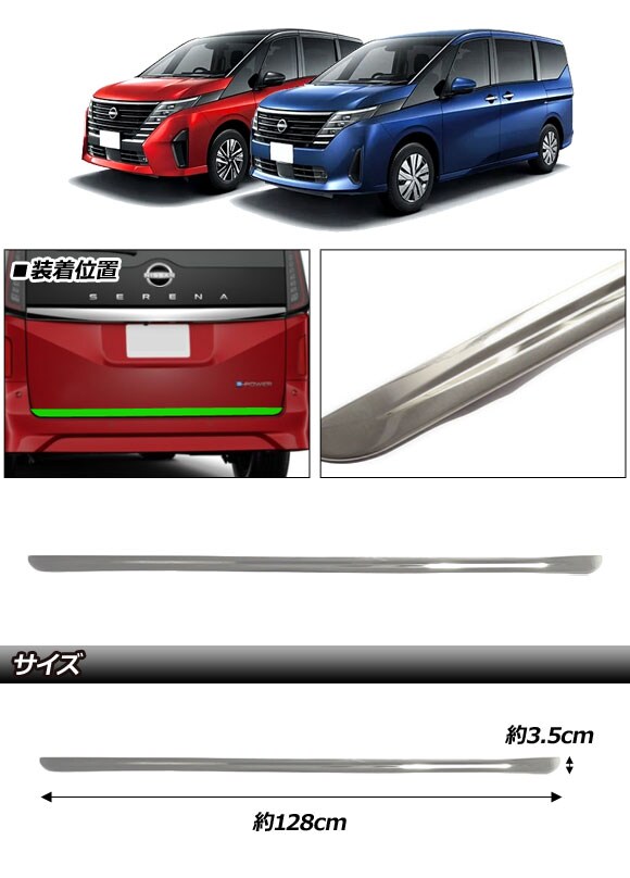 バックドアガーニッシュ 日産 セレナ C28系 e-POWER可 2022年12月~ シルバー ステンレス製 AP-XT2438