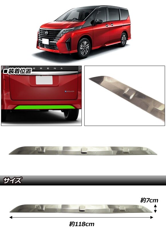 リアバンパーガーニッシュ 日産 セレナ C28系 ハイウェイスター専用 2022年12月~ シルバー ステンレス製 AP-XT2439
