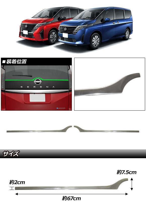 リアエンブレムガーニッシュ 日産 セレナ C28/NC28/FC28/FNC28/GC28/GFC28 e-POWER可 2022年12月~ シルバー ステンレス製 入数:1セット(2個) AP-XT2440