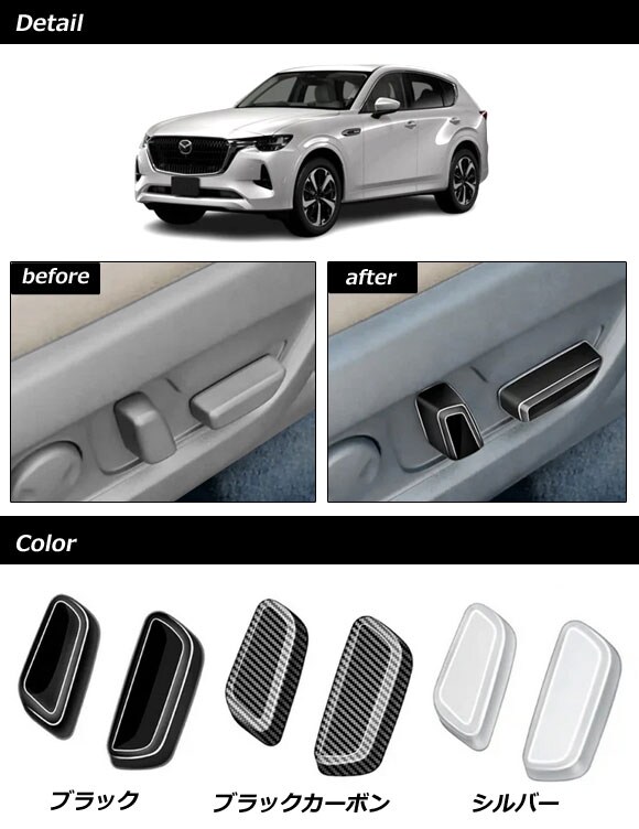 インテリアシートスイッチカバー マツダ CX-60 KH系 2022年09月~ ブラック ABS樹脂製 入数:1セット(2個) AP-IT3598-BK