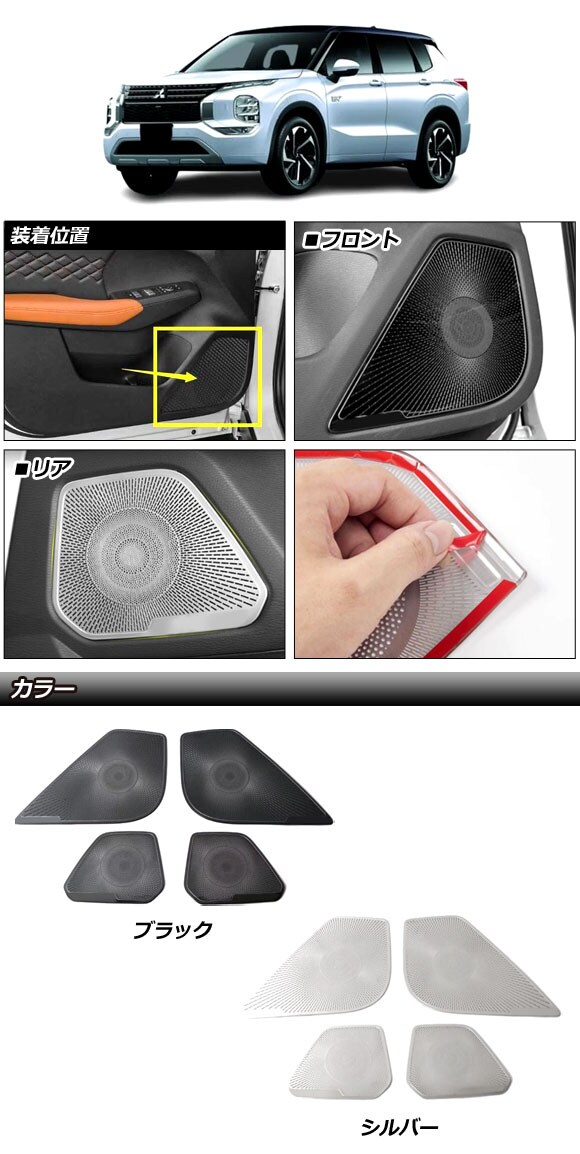 ドアスピーカーパネル 三菱 アウトランダーPHEV GN0W 2021年12月~ シルバー ステンレス製 入数:1セット(4個) AP-IT3630-SI