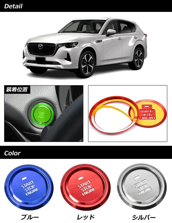 スタートスイッチカバーセット マツダ CX-80 KL系 2024年10月~ シルバー ステンレス製 入数:1セット(2個)