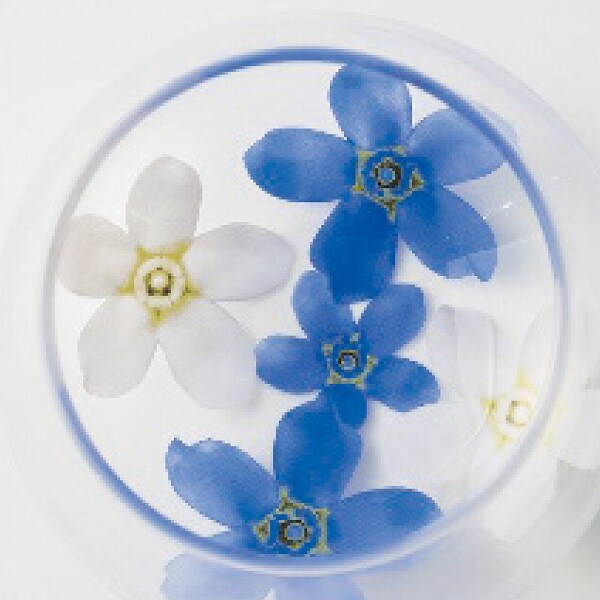 色鮮やかな花をうかべた花手水をモチーフしたゆらりグラス。