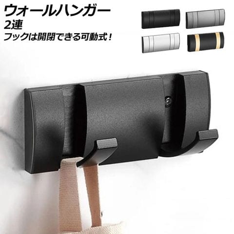 ウォールハンガー 2連 アルミ製 フックは開閉できる可動式! 選べる4カラー AP-UJ0953-2