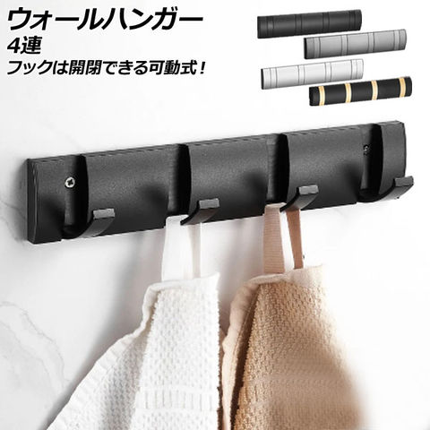 ウォールハンガー 4連 アルミ製 フックは開閉できる可動式! 選べる4カラー AP-UJ0953-4