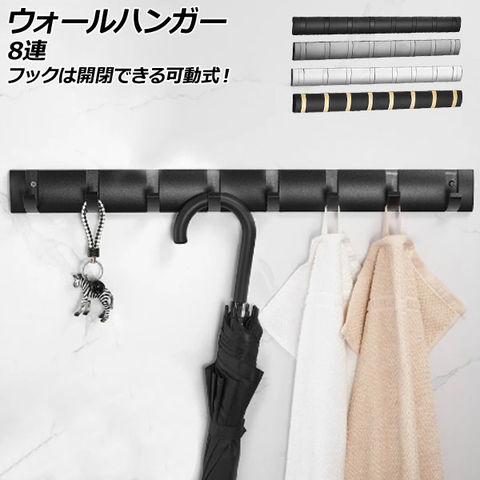 ウォールハンガー 8連 アルミ製 フックは開閉できる可動式! 選べる4カラー AP-UJ0953-8