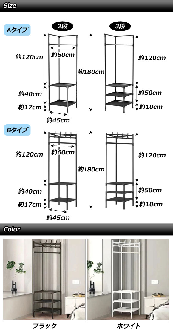 ハンガーラック Bタイプ 3段 ステンレス製 スペースの有効活用に! 選べる2カラー AP-UJ0955-B3