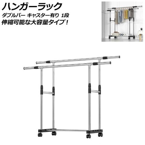 ハンガーラック ダブルバー キャスター有り 1段 伸縮可能な大容量タイプ! AP-UJ0958-B1