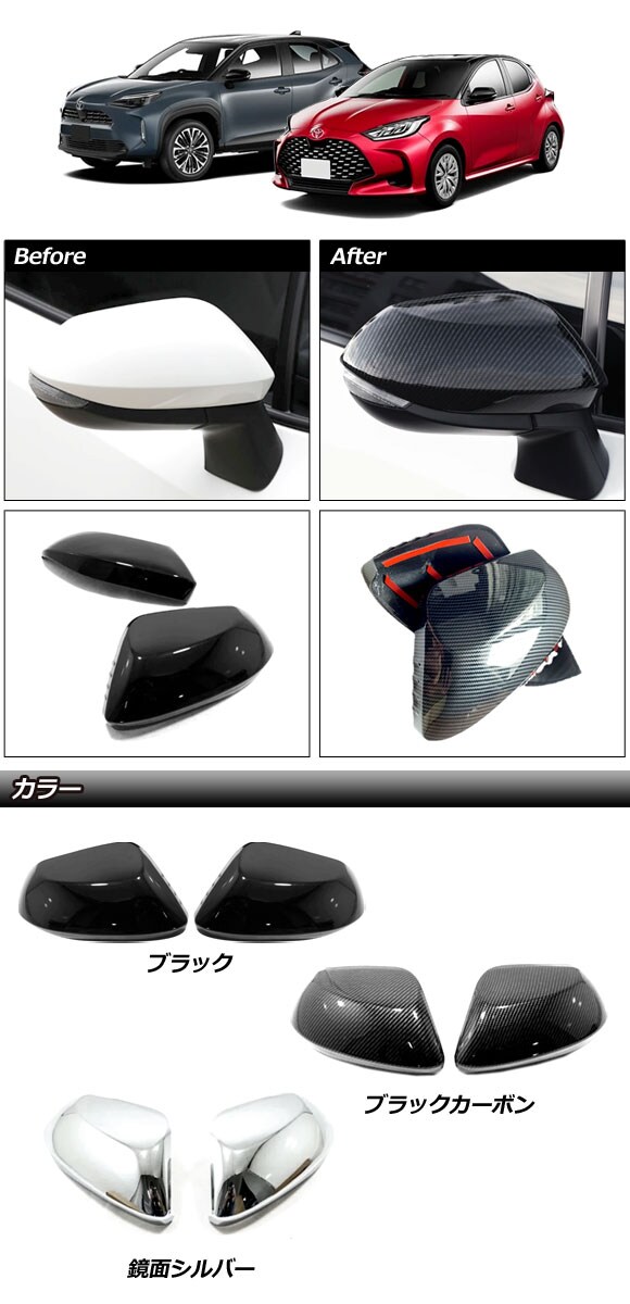 ドアミラーカバー トヨタ ヤリス 10系 2020年02月~ ブラックカーボン ABS製 入数:1セット(左右)