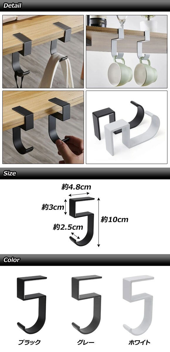 バッグフック テーブルフック カバン掛け バッグホルダー デスクハンガー デスクフック フック ハンガー 吊り具 デスク 机 テーブル デスク下 棚 天板 バッグ カバン 鞄 荷物 手荷物 手提げ 傘 杖 アルミ アルミニウム 金属 コンパクト 持ち運び 収納 便利 便利グッズ リビング キッチン アウトドア キャンプ オフィス 事務所 店舗 お店 外出先 飲食店 多用途 シンプル
