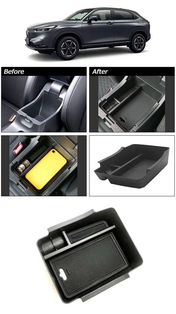 アームレストトレイ ホンダ ヴェゼル RV系 2021年04月~ ブラック ABS製 滑り止めマット付き AP-AS1015