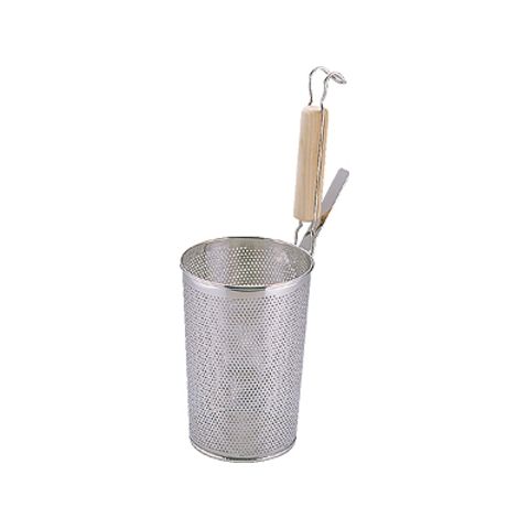UK 18-8 パンチング木柄 煮ザルうどんてぼ 深型 底平 (070435-001)