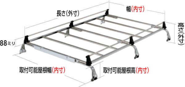 ロッキープラス SEシリーズ ルーフキャリア 日産 サファリ 61 ロング標準ルーフ(グランロード) 1997年10月~2007年06月 6本脚・雨ドイ挟み込みタイプ