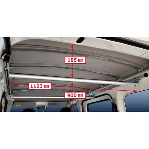 「ラゲッジバー」を取付ける事で軽量な長尺資材などが収納できハンガーパイプとして使用できます。