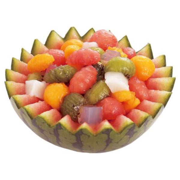 フルーツの中心を取り囲むようにカットしたらフルーツバスケットの出来上がり。
