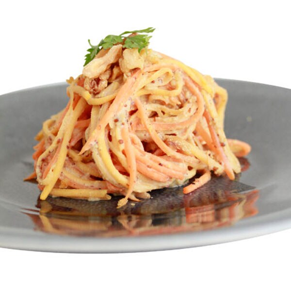 いろんな野菜を千切りにして合わせ、新しい味覚ができあがる。
