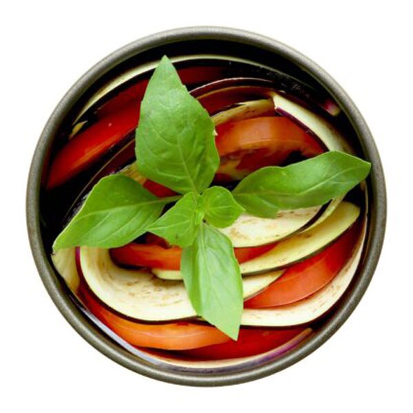 思いつくまま、野菜をホットディッシュにたくさん詰め込みオーブンで焼き上げるだけ。