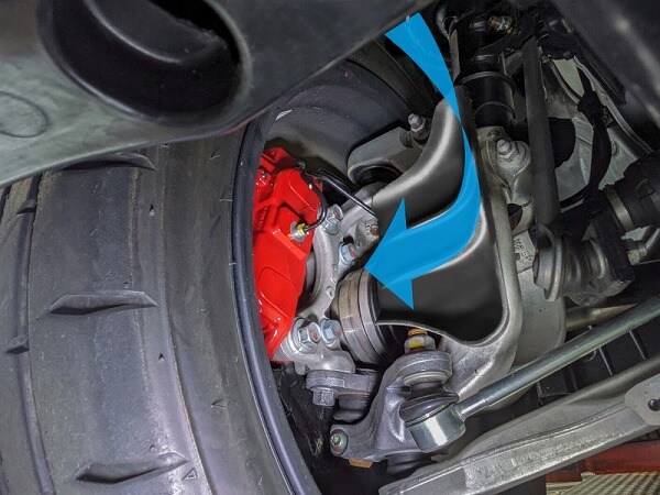 ■フロントフェイス開口部からの冷却風をより効率よく導風し、フロントブレーキの温度上昇を低減