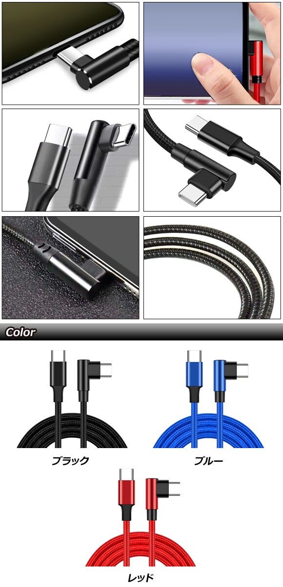 USB Type-Cケーブル ブラック 3m 60W ナイロン編みタイプ オス-オス L字&I字型 PD急速充電対応 AP-UJ0999-BK-3Mのレビュー