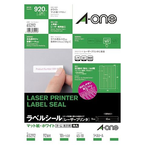 エーワン(A-one) ラベルシール レーザープリンタ A4 92面 四辺余白付 65292(08978)