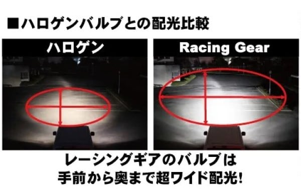 RG独自の極小LED素子配列パターンで「ドライバーが見やすい」と感じる照射面積を大幅に拡大。照射部分での照度も従来品に比べ改善向上。
