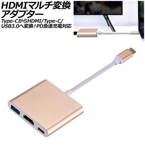 HDMIマルチ変換アダプター ゴールド×ホワイト Type-CからHDMI/USB3.0/Type-Cへ変換!PD急速充電対応 AP-UJ1020-GDWH