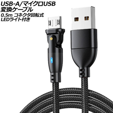 USB-A/マイクロUSB 変換ケーブル ブラック 0.5m コネクタ回転式 オス-オス LEDライト付き AP-UJ1025-BK-50CM