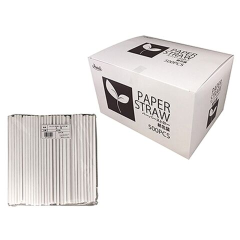 ペーパーストロー 白 6×210mm 紙包装 入数:1セット(500本) (057293-002)
