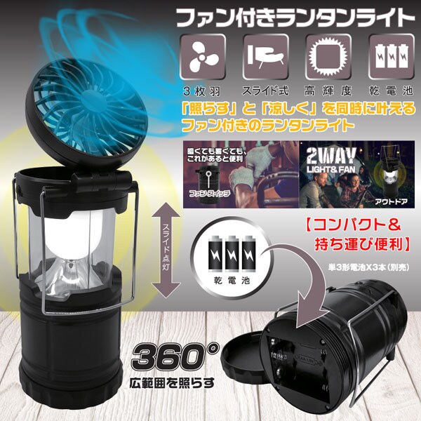 HIRO ファン付きランタンライト 2WAY 3枚羽 乾電池式 照らすと涼しくを同時に叶える ED-FR001