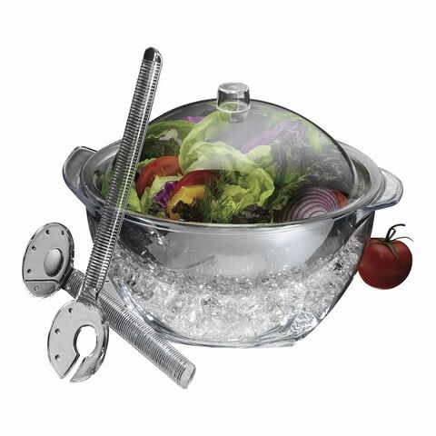 材質:下ボウル/ポリスチレン、サラダボウル/ステンレス(深さ105)、カバー/アクリル、サラダサーバー/アクリル(全長320)