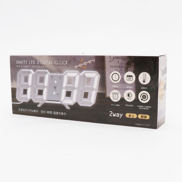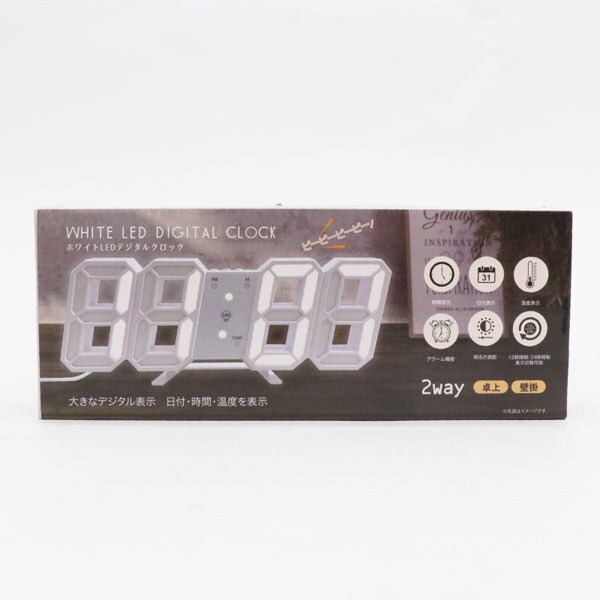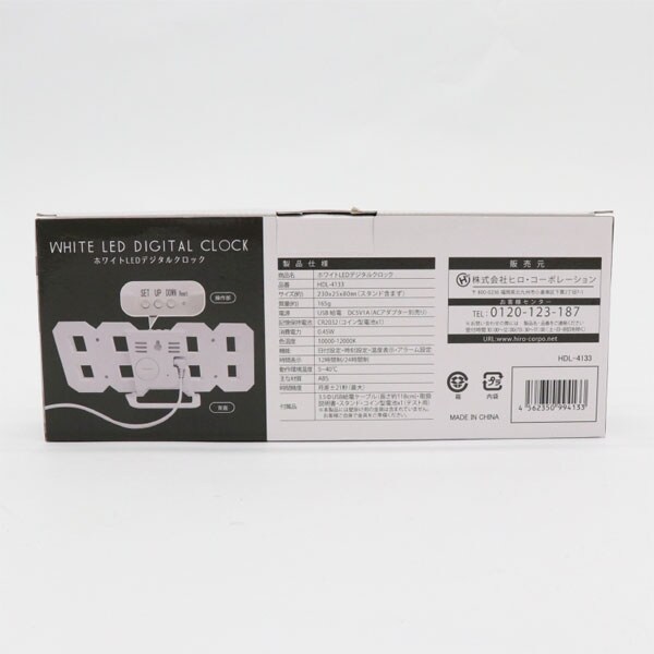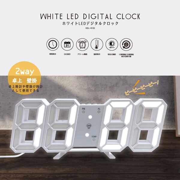 ヒロコーポレーション HIRO CORPORATION ヒロ・コーポレーション デジタルクロック デジタル時計 置き掛け兼用時計 デジタル デジタル表示 LED 点灯 光 ライト ランプ 時計 クロック 卓上 置時計 置き時計 掛時計 掛け時計 壁掛け 兼用 両用 数字 日付 時間 温度 アラーム 12時間 24時間 表示 シンプル 白 WHITE HDL4133 HDL 4133