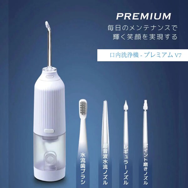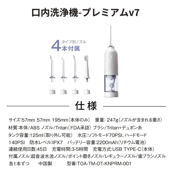 HIRO 口内洗浄機 プレミアムV7 ホワイト タイプ別ノズル4本付き TOA-TM-OT-KNPRM-001