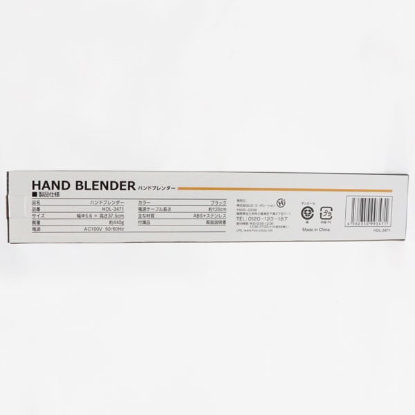 ヒロコーポレーション HIRO CORPORATION ヒロ・コーポレーション ハンディブレンダー ハンドミキサー ブレンダー ミキサー スティックブレンダー スティック フードプロセッサー つぶす 潰す 混ぜる 泡立てる スムージー ポタージュ スープ 離乳食 HDL3471 HDL 3471 黒 BLACK