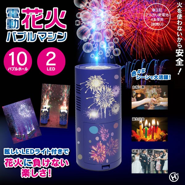 HIRO 電動花火バブルマシン 2LED 10バブルホール 音と光で花火に負けない楽しさ HDL-9993