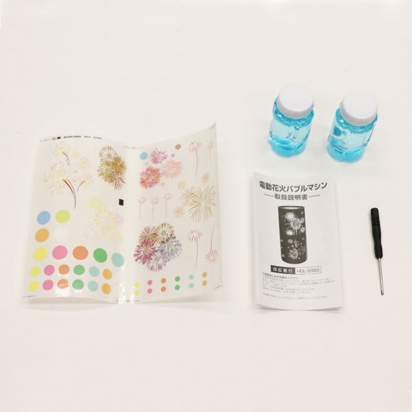 付属品:シャボン玉液×2/シール/取り扱い説明書/プラスドライバー