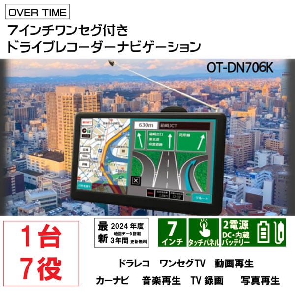 OVER TIME ドライブレコーダーナビゲーション 7インチ ワンセグ付き 1台7役! OT-DN706K
