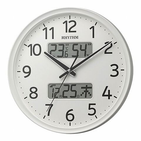 リズム時計 フィットウェーブリブ フィットウエーブリブ 電波クロック 電波掛け時計 掛け時計 壁掛けクロック 壁掛け時計 壁掛け 時計 クロック 電波 インテリア 連続秒針 温湿度計 温度計 湿度計