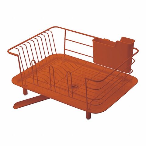 水切りカゴ 水切りかご 水切りバスケット 水切りラック 水切りトレー ディッシュラック ラック 食器洗い 皿洗い シンク 排水 樋 排水ノズル カトラリー入れ カトラリースタンド コップホルダー グラスホルダー 赤