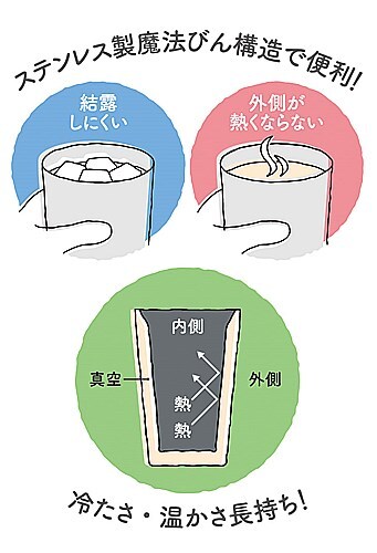 ステンレス製魔法びん構造で便利!