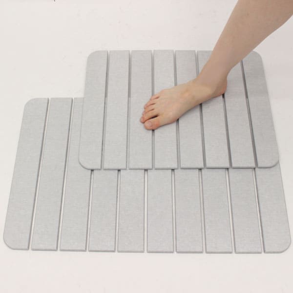 驚異の吸水力、毎日のお洗濯は不要、消臭効果もあり衛生的で手間いらずという効果で、世間から注目を浴びる事となった「珪藻土バスマット」から新しい折りたたみタイプが仲間入り。
