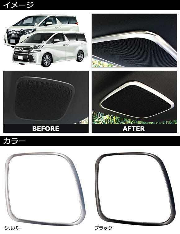 テールゲートスピーカーカバー トヨタ アルファード/ヴェルファイア 30系 2015年01月~2023年06月 ブラック ステンレス製 AP-IT3766-BK