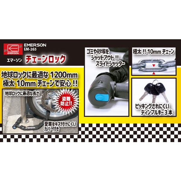 エマーソン(Emerson) チェーンロック 1200×10mm 愛車をキズ付けにくいカバー付き EM-265