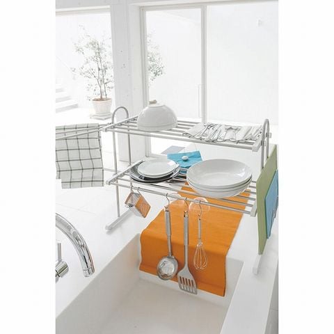 TAKUBO タクボ 置き棚 置棚 水切りラック 水切り棚 キッチンラック シンク上ラック シンクサイドラック キッチン収納 ラック シンク周り シンク ステンレス フック 角ポケット カトラリー まな板受け ふきん掛け