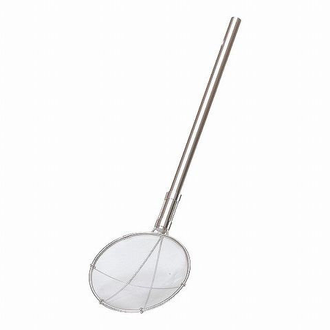 金網の中でも太い線の網を用いることによって可能になった、非常に強度の高いすくい網です。荒目の網であり、大きめのガラ、肉、野菜などを揚げるのに適しています。