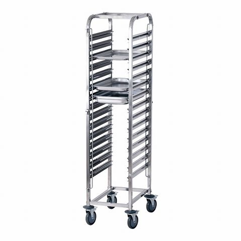 今や運搬・保管の必需品!ガストロノームパンやホテルパン専用のカートです。運搬はもちろん、穴明パンやグリット網といった意外と多いコンベクションオーブンの備品類の保管にも便利です。