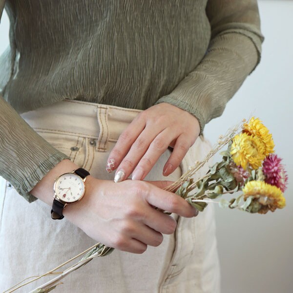 アナログウォッチ アナログウオッチ アナログ時計 リストウォッチ ウォッチ ウオッチ 時計 時間 アナログ ANALOG うでどけい 文字盤 手首 レディース 女性 メンズ 男性 ユニセックス キッズ 子供 男の子 女の子 おしゃれ かわいい フラワー 花 花柄 植物 針 葉っぱ BROWN 茶 GY039