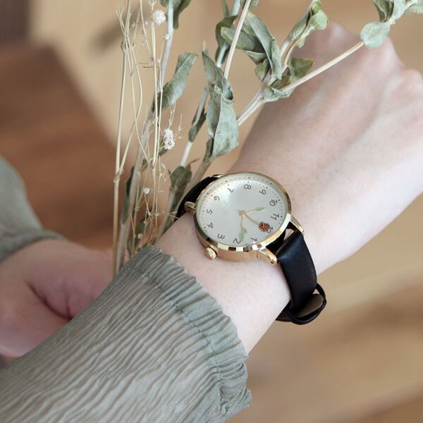 アナログウォッチ アナログウオッチ アナログ時計 リストウォッチ ウォッチ ウオッチ 時計 時間 アナログ ANALOG うでどけい 文字盤 手首 レディース 女性 メンズ 男性 ユニセックス キッズ 子供 男の子 女の子 おしゃれ かわいい フラワー 花 花柄 植物 針 葉っぱ BLACK 黒 GY039