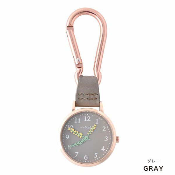 カラビナウォッチ カラビナウオッチ アナログウォッチ アナログウオッチ アナログ時計 ウォッチ ウオッチ 時計 時間 アナログ ANALOG 腕時計 懐時計 カラビナ キーホルダー ストラップ バッグ 鞄 かばん カバン 付ける レディース 女性 メンズ 男性 ユニセックス キッズ 子供 男の子 女の子 おしゃれ かわいい フラワー 花 花柄 植物 針 葉っぱ GRAY 灰 ミモザ GY050