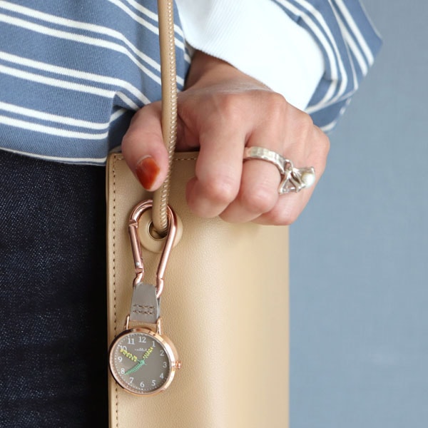 カバンに付けると時間のチェックがしやすく、ファッションのポイントにもなります。
