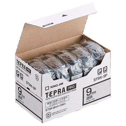 キングジム(Kingjim) テプラPRO テープカートリッジ 透明 入数:1箱(5個) ST9K-5P(60072)
